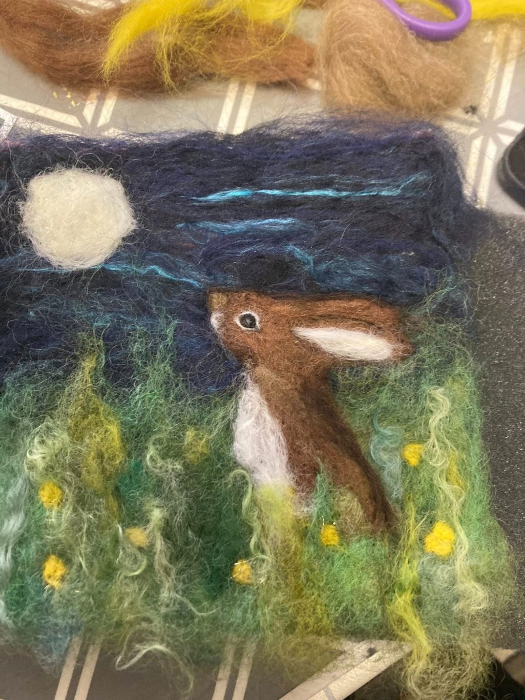 "Fantastic therapeutic felting afternoon. I needed this . All the hares looked beautiful and we had a fun creative afternoon. Thank you Georgina Haim".