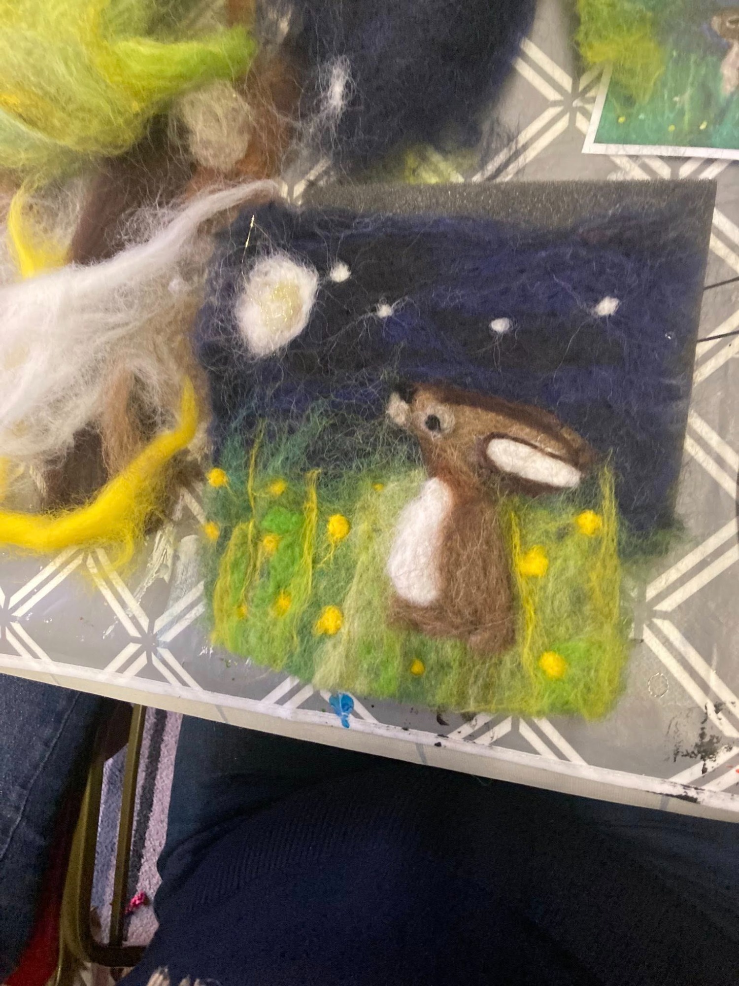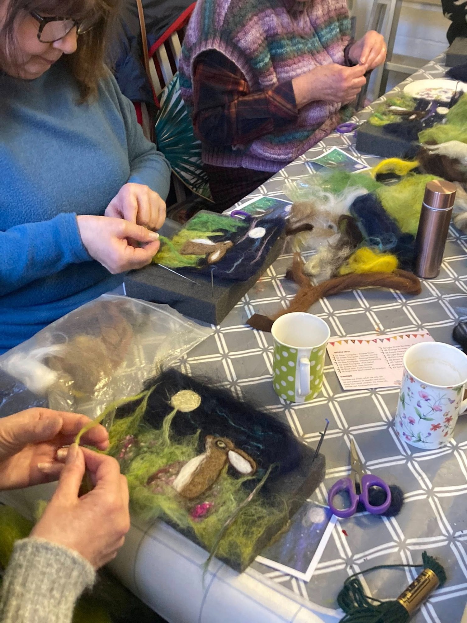 "Fantastic therapeutic felting afternoon. I needed this . All the hares looked beautiful and we had a fun creative afternoon. Thank you Georgina Haim".